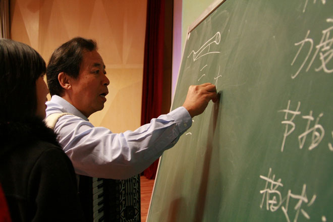 中国硬笔书法协会主席、著名书法家、教育家和诗人庞中华先生以“让我们走向成功”为题,结合自己的实际经历,从激情、技能和创新三个方面讲述了如何练就一笔好书法。不仅通过诗歌的形式讲述了王羲之、颜真卿、张旭、赵孟頫等著名书法家的书法特点,还以手风琴演奏和书法相结合的形式将书法练习另类演绎,从角度、力度、节拍、描述和败笔五个角度详细介绍了点、横、竖、撇、捺、提、折、钩八种楷书的基本笔画,寓教于乐,在轻松愉悦的氛围下练习书法。庞中华还称,教育是人类最伟大的事业,文字是教育的重要工具,鼓励学生要写好书法,争做中国优秀文化的传承者和传播者。