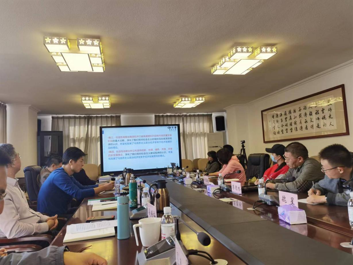 院党委中心组成员通过线上形式认真听取了胡金焱书记题为《构建“双循环”新发展格局,推进经济高质量发展》的辅导报告。胡金焱从习近平经济思想的形成与发展、“国际大循环”经济发展战略的回顾、“双循环”新发展格局的理论与实践、供给侧结构性改革推进经济高质量发展四个方面,系统全面、深入浅出地分享了深入学习习近平经济思想的体会和思考,对全校党员干部深入学习领会习近平新时代中国特色社会主义思想的理论体系和丰富内涵具有很强的指导意义。