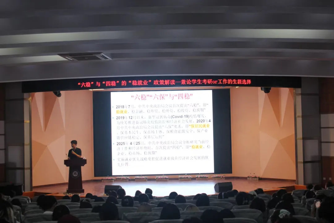 就业工作是落实党的教育方针和国家发展战略的具体实践,是党建服务中心工作、服务学生成长的重要体现。讲座不仅为同学们提供了切实可行的考研规划指导和素质培养规划,明确了就业方向,更激发了学生的学习热情与奋斗精神,厚植了家国情怀。