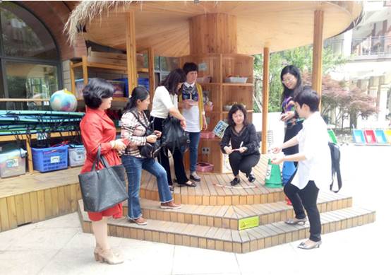 上午,我们来到成都市第四幼儿园,实地考察这个全国位数不多的“巾帼文明单位”。从园长的简单介绍,我们了解到成都四幼深厚的文化底蕴和前沿的专业理念,七十多年的积淀,让成都四幼从老师到孩子,都散发着儿童的感觉、教育的味道。