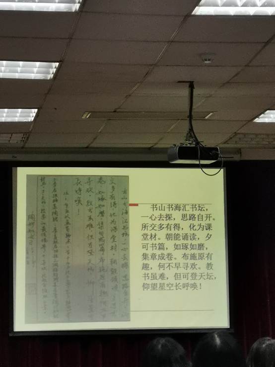 知道今天要聆听陶妙如老师的讲座,这首以前读过的陶先生的诗,又浮现于脑海。仅仅读陶先生的书,一个知教育懂学生爱生活的质朴清新而又空灵高雅的妙女形象会飘然于前,但真正在现场听陶先生的讲座,可能大家都会和我一样,会被先生强大的能量体所吸引,感于其德、佩于其才,发自内心的承认这是一位德近佛、才近仙的大师。